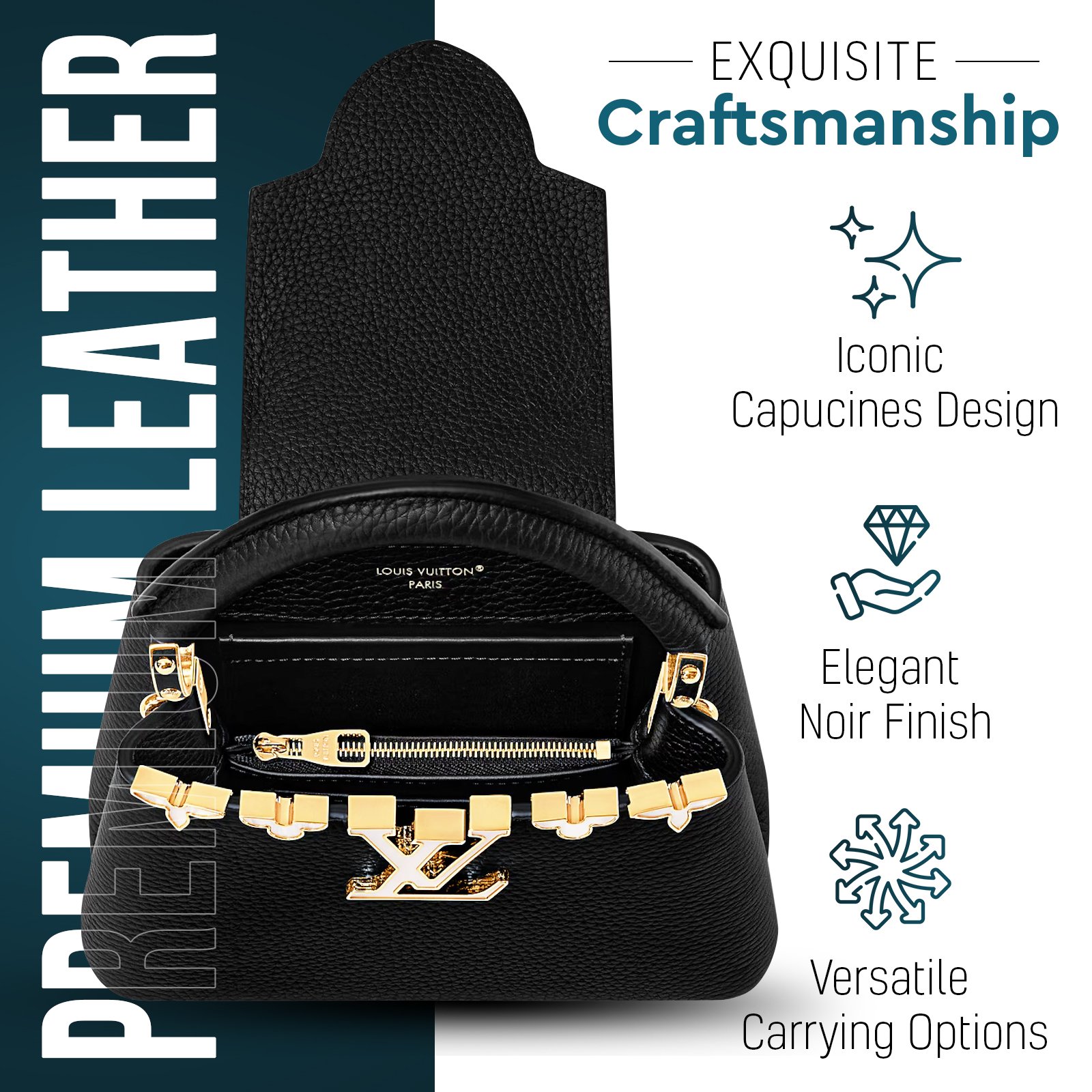 Designed for versatility, the Capucines Mini can be carried by hand, on the elbow, or worn crossbody using its removable strap. The interior is lined with soft leather and divided into compartments, making it both stylish and functional for everyday essentials.