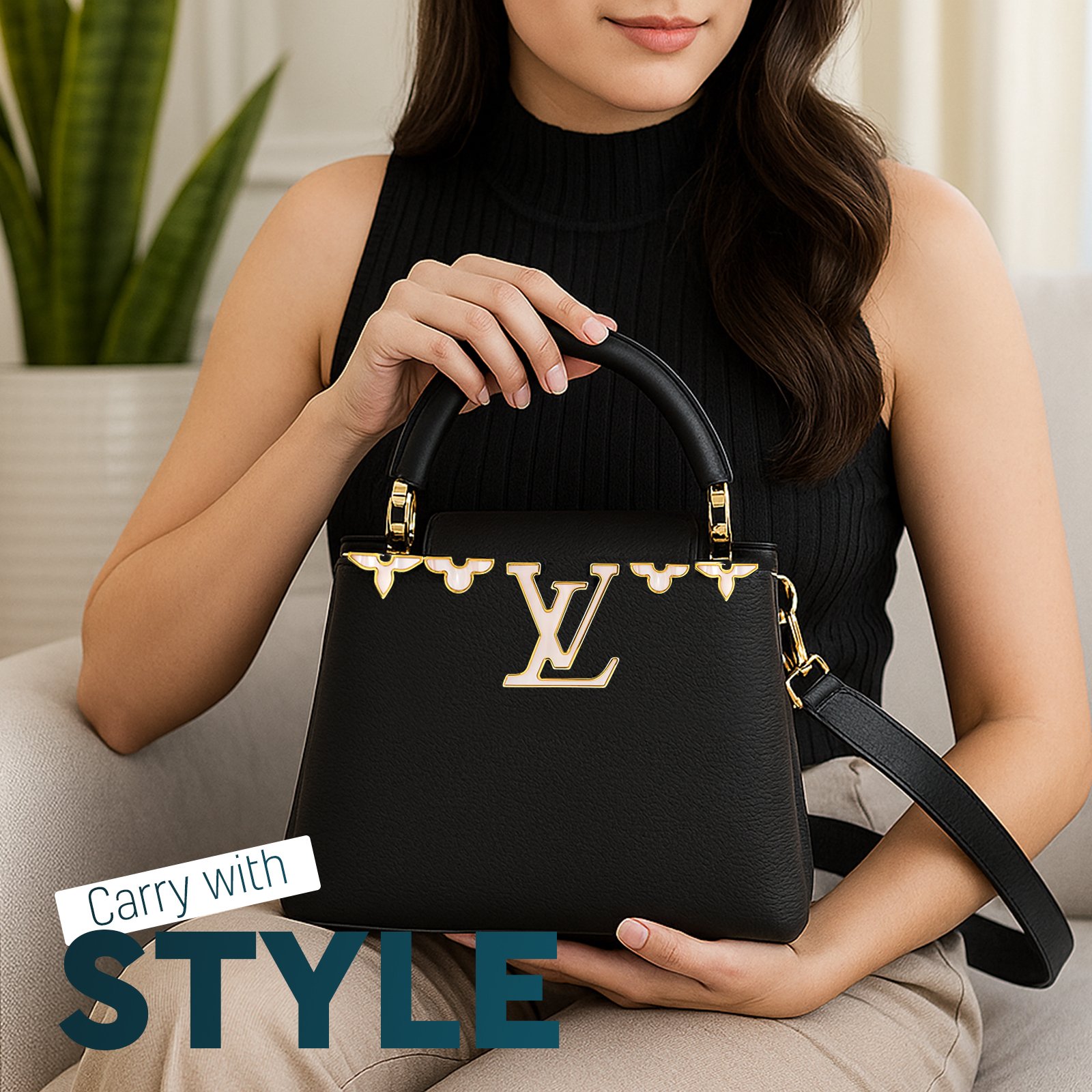 Elegant and timeless, the First Copy LV Capucines Mini Tote Bag embodies sophistication in every detail. Crafted from luxurious full-grain Taurillon leather, this compact masterpiece features a sleek top handle, signature LV initials in gleaming gold-tone metal, and delicate Monogram flower accents that reflect the Maison’s iconic craftsmanship.